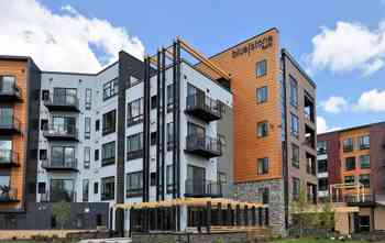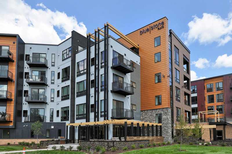 Bluestone Flats is a 5 story, 142-unit multi-family housing complex with ground level parking. P&R provided the complete plumbing and HVAC systems, which includes a gas-fired PTAC for heating and cooling throughout.